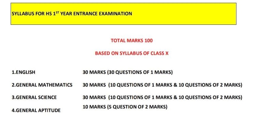 SYLLABUS FOR H.S 1ST YEAR ENTRANCE EXAMINATION - 2026